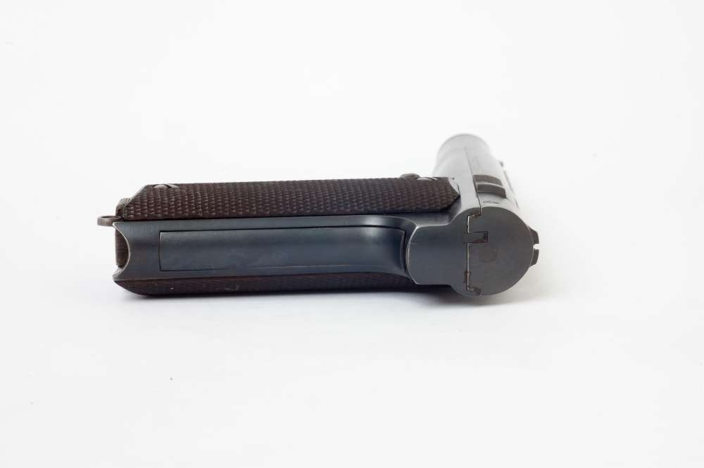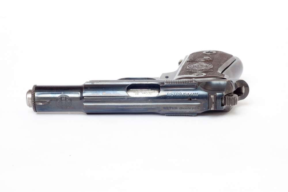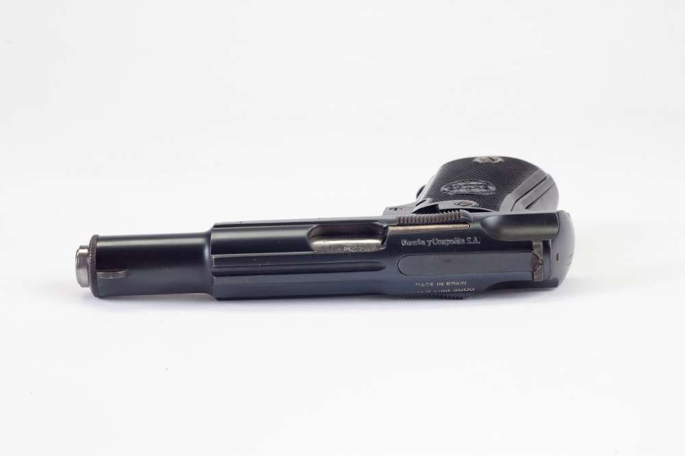 Description: According to the Spanish proof marks under the left grip, this gun was made in 1971; Excellent bore; about 96% finish; correct magazine; about excellent overall and very hard to find
