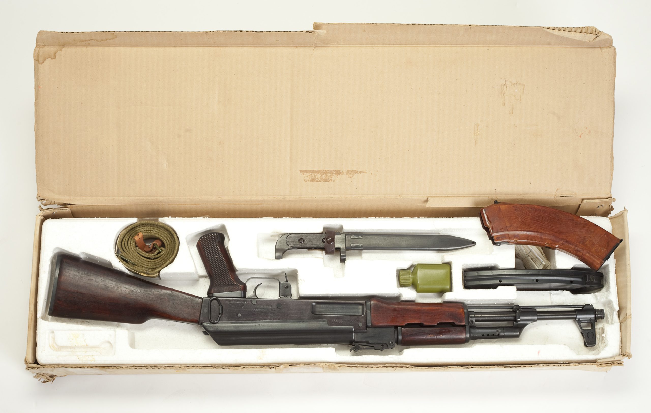 Description: Early model pre-ban AK-47/S Poly Tech made in Beijing, China. Original magazine. Firearm is in mint condition with very minor wear shown on beautiful wood stock. Firearm comes with original box with accessories as shown in pictures.